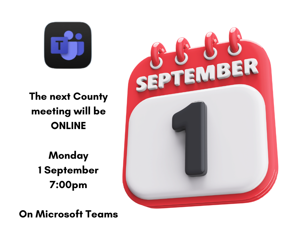 Reminder: the next County Meeting is via Teams on Monday 1 September. Details, agenda etc are available via your Club Secretary